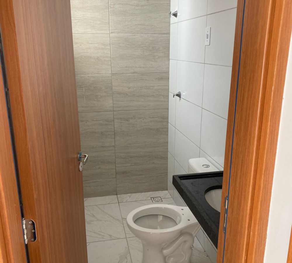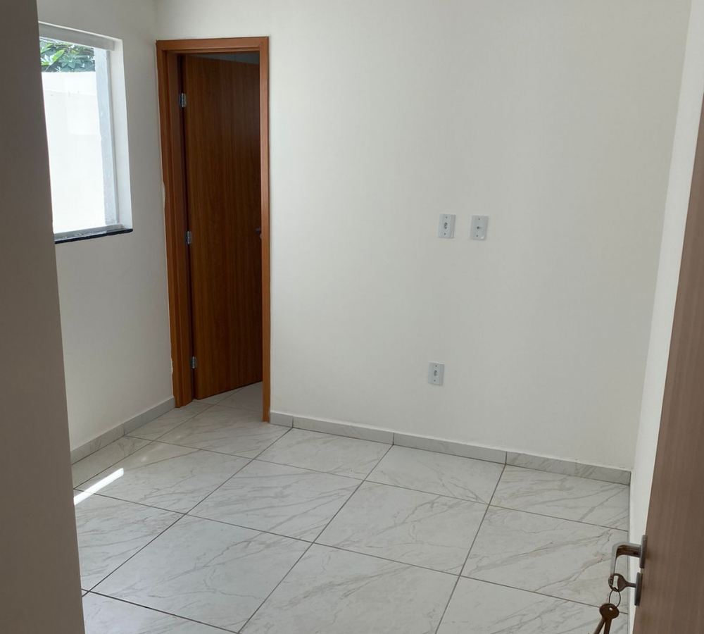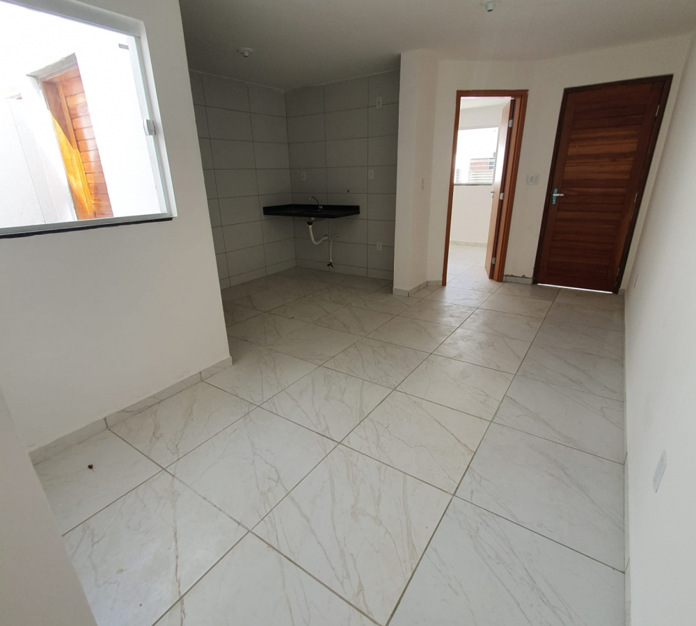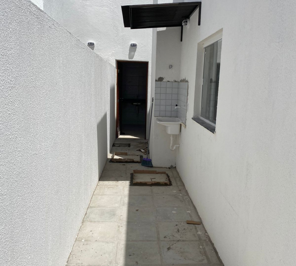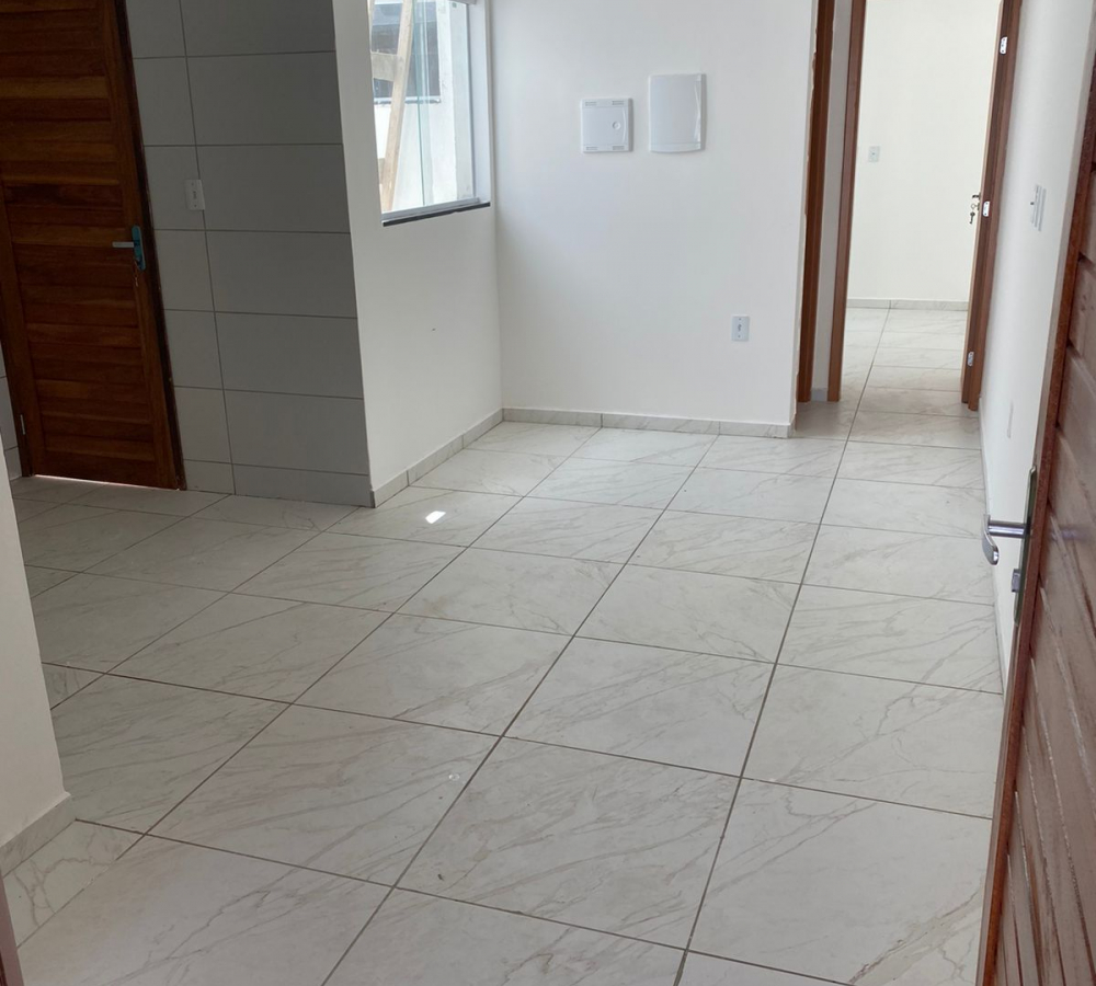 CASAS DE 2 QUARTOS Sala ampla com cozinha 2 quartos sendo uma suíte Banheiro social Terraço, garagem descoberta e ÁREA DE SERVIÇO