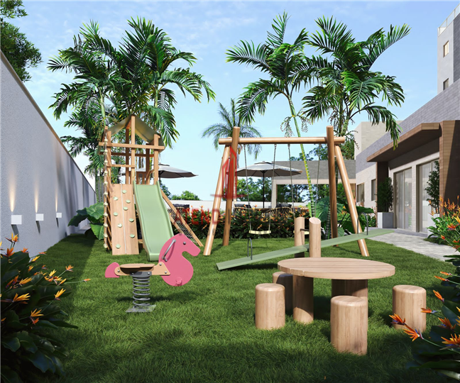 Os Aptos são de 3 e 2 quartos, com suíte e varanda, alguns com área privativa no térreo, e 4 coberturas exuberantes. Área de lazer com: Piscina, campinho de futebol, playground, área gourmet mobiliada e com duas churrasqueiras, academia com equipamentos, salão de festas mobiliado com mesas e cadeiras e coworking. Além de elevador, portaria com porteiro 24 horas, circuito fechado de câmeras de segurança e cerca elétrica.
